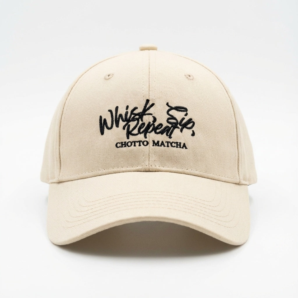 The Whisk, Sip, Repeat Cap captures the rhythm of a matcha lover’s lifestyle — whisking, sipping, and doing it all over again. Featuring a hand-drawn style embroidered logo, this cap keeps things effortless, playful, and timeless.
